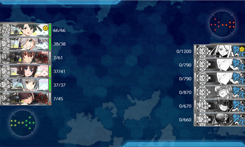 E-4甲:榧、Drum×2、Dace×2、Scamp、山汐丸/掘り出撃37回(ボス到達率81%、S勝利率100%)